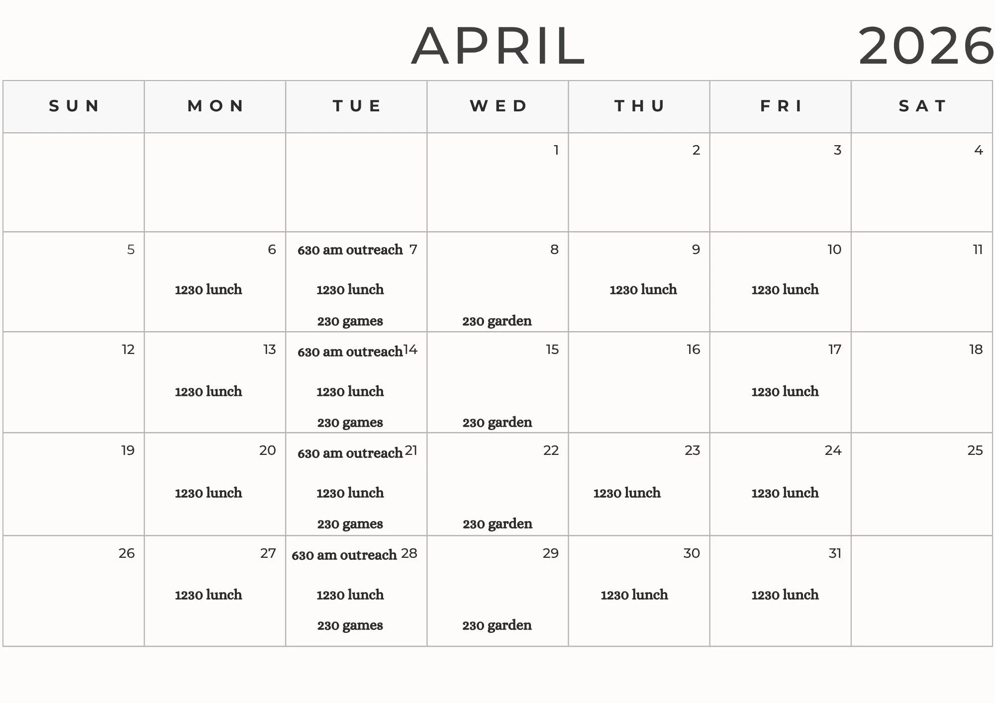 April 2026 volunteer calendar. If interested in one of these events, please reach out to our Volunteer coordinator Alex Banks 253-678-3647